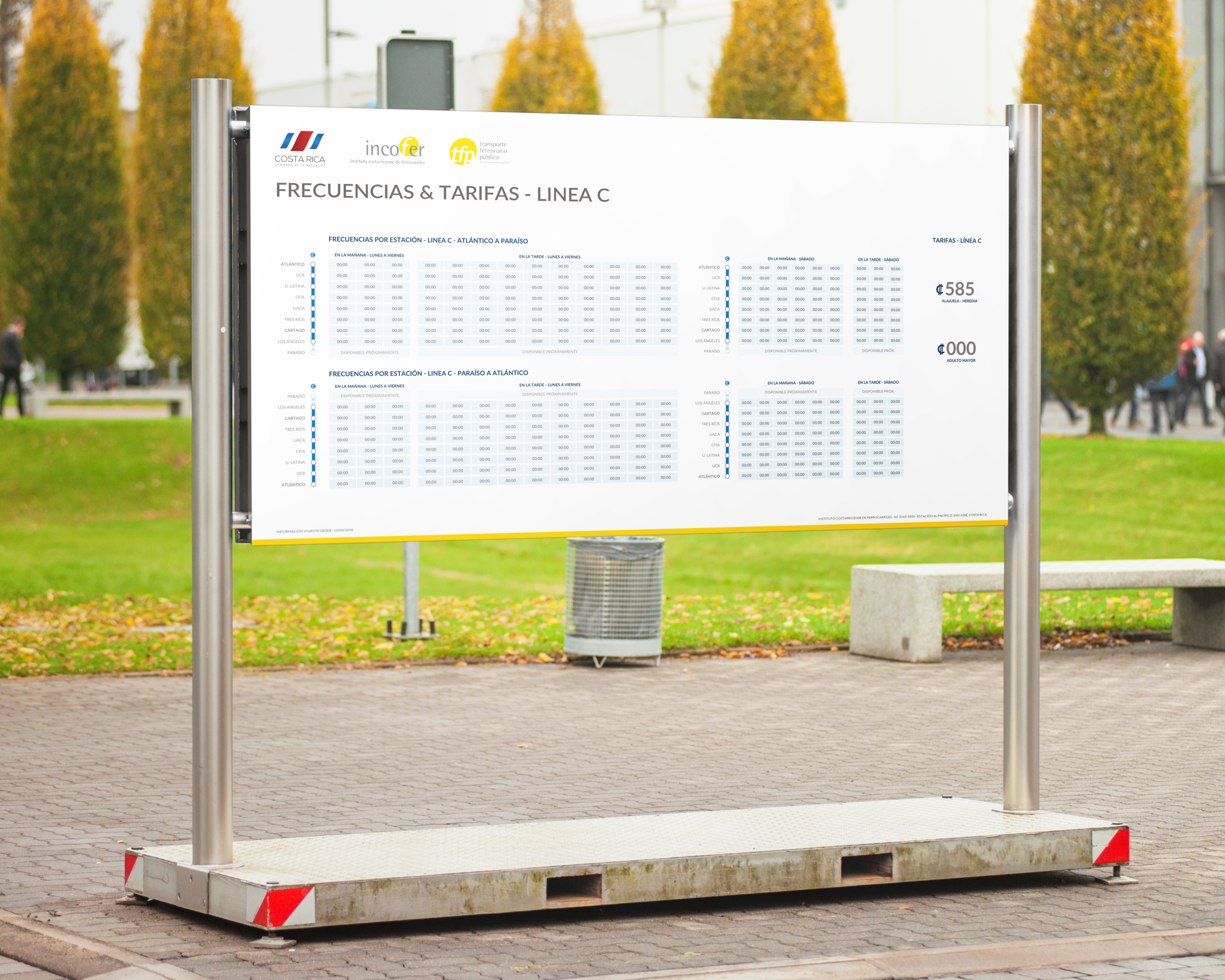 Signaletics is an information system designed to improve and guide the flow of people through a closed system, in this case the system corresponded to the public railway transport for the Greater Metropolitan Area of Costa Rica, which comprises the cities of San José, Alajuela, Heredia and Cartago. Furthermore, this region withholds close to the 60% of the population of the country. At the moment of designing this project, the Costa Rican Railway Institute did not possess an organized system or method of conveyance of information for the user of their public transport system. This project was created in order to fulfill this need.